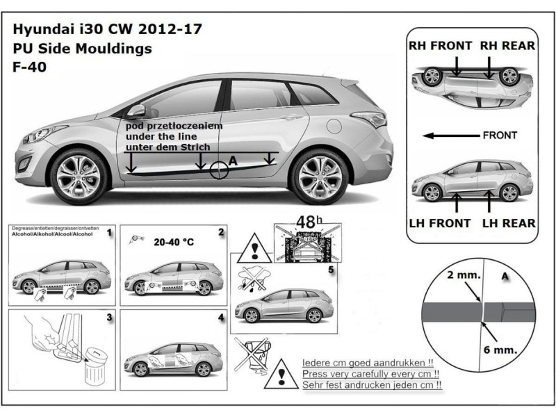 Listwy boczne na drzwi ochronne, Hyundai i30 II, 2012-2017, Combi, Hatchback