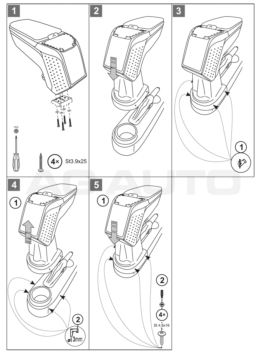 Montaż podłokietnika jest niezwykle prosty – nie trzeba odwiedzać serwisu. Instrukcja znajduje się w zestawie. Uchwyty montażowe są produkowane indywidualnie do konkretnych modeli pojazdów, dzięki czemu idealnie pasują. Nie otrzymasz żadnego uniwersalnego adaptera, który mógłby sprawić problemy przy instalacji.