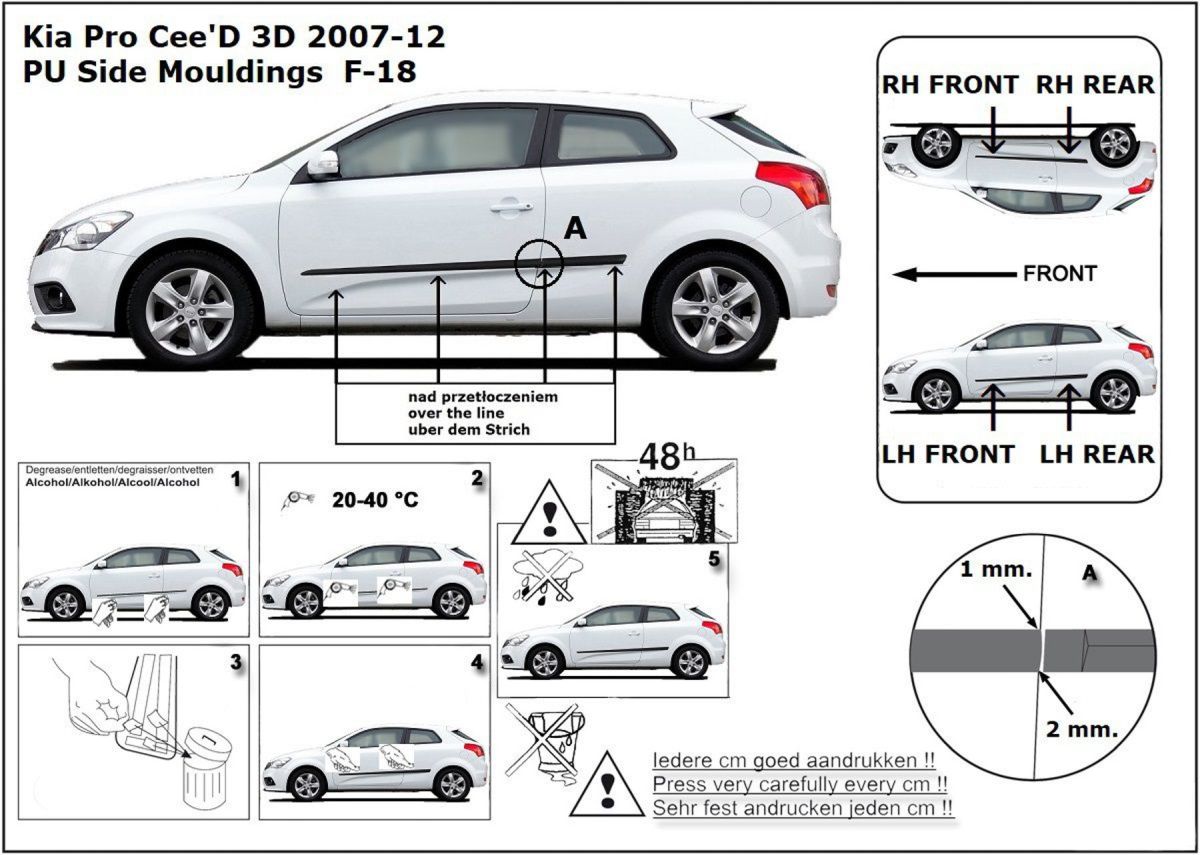 Listwy boczne na drzwi ochronne, Kia ProCeed I, 2007-2012