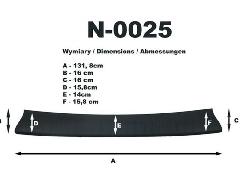 Listwa ochronna bagażnika jest produkowana z czarnego plastiku ABS charakteryzującego się wielką odpornością przeciw uszkodzeniom oraz otarciom. Prosty montaż listwy za pomocą taśmy obustronnej, która jest zawartością zestawu.