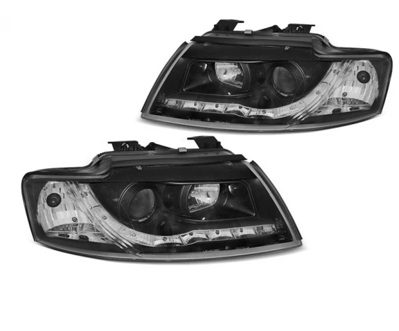Lampy przednie, AUDI A4 B7, 2004-2008, TUBE LIGHTS CZARNA TRU DRL