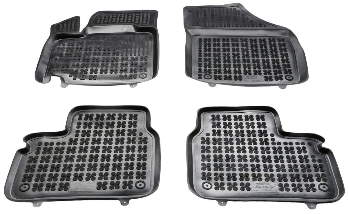 Przednie dywaniki są nawet wyposażone w miejsca na fabryczne stopery, które są zawarte w pakiecie. Dzięki stoperom można dywanik przymocować do podłogi samochodu i zapobiec suwaniu się dywanu. Dywaniki gumowe od producenta Rezaw-Plast mają nowoczesny design i produkowane są w Polsce. Wysokiej jakości materiał TPE nie wydziela nieprzyjemnego zapachu.