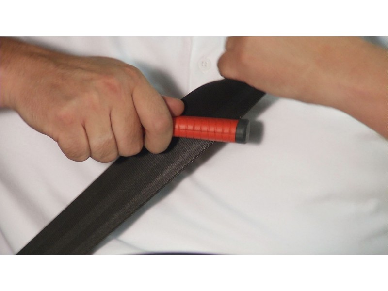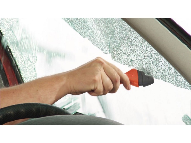Młotek bezpieczeństwa z bardzo twardą ceramiczną główką oraz przecinakiem do pasów. Specjalny ucinak do pasów, który przetnie pasy już za pierwszym razem. Dzięki młotku wydostaniecie się z pojazdu podczas jakiejkolwiek trudnej sytuacji. Nawet dziecko jest w stanie dzięki młotkowi rozbić szybę auta i wydostać się z niebezpieczeństwa.