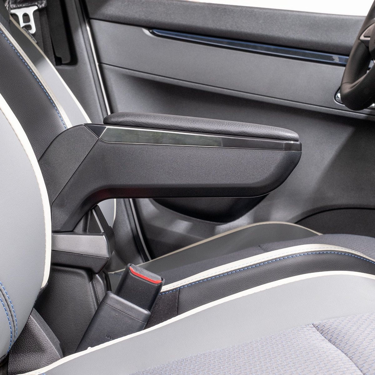 Podłokietnik jest otwierany, wewnątrz znajduje się praktyczny schowek dla rzeczy kierowcy i współkierowcy. Schowek jest wyścielony i można go otworzyć za pomocą przycisku. Całą górną część można odchylić do pionu, kiedy jest to potrzebne.
