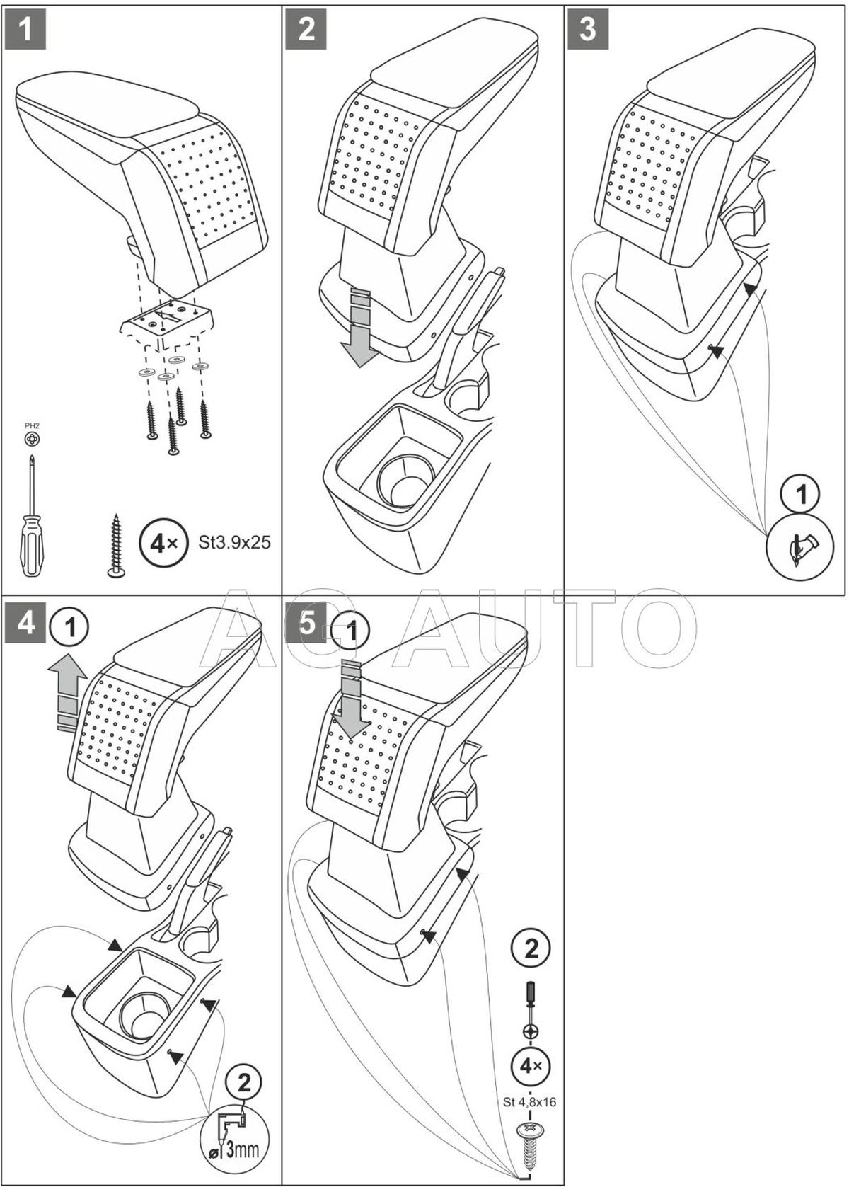 Montaż podłokietnika jest bardzo prosta i nie ma potrzeby odwiedzić serwis samochodowy. Instrukcja obsługi i wkręty do montażu znajdują się w zestawie. Część dolna podłokietnika – adapter, który przykręca się do tunelu środkowego, wykonany jest pod kształt konkretnego modelu auta, dlatego zawsze doskonale pasuje. Nie jest to uniwersalny adapter!