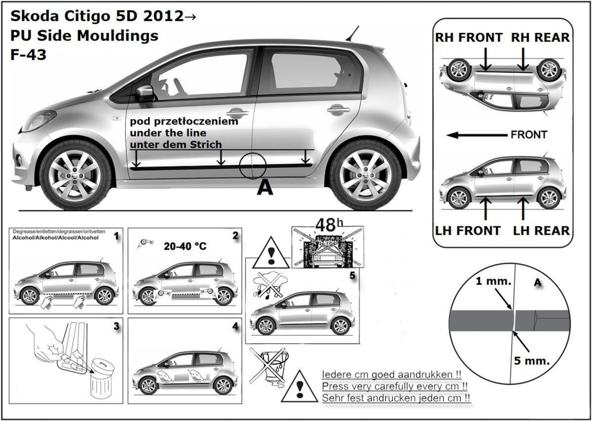Listwy boczne na drzwi ochronne, Skoda Citigo, 2011-2019, 5 drzw.
