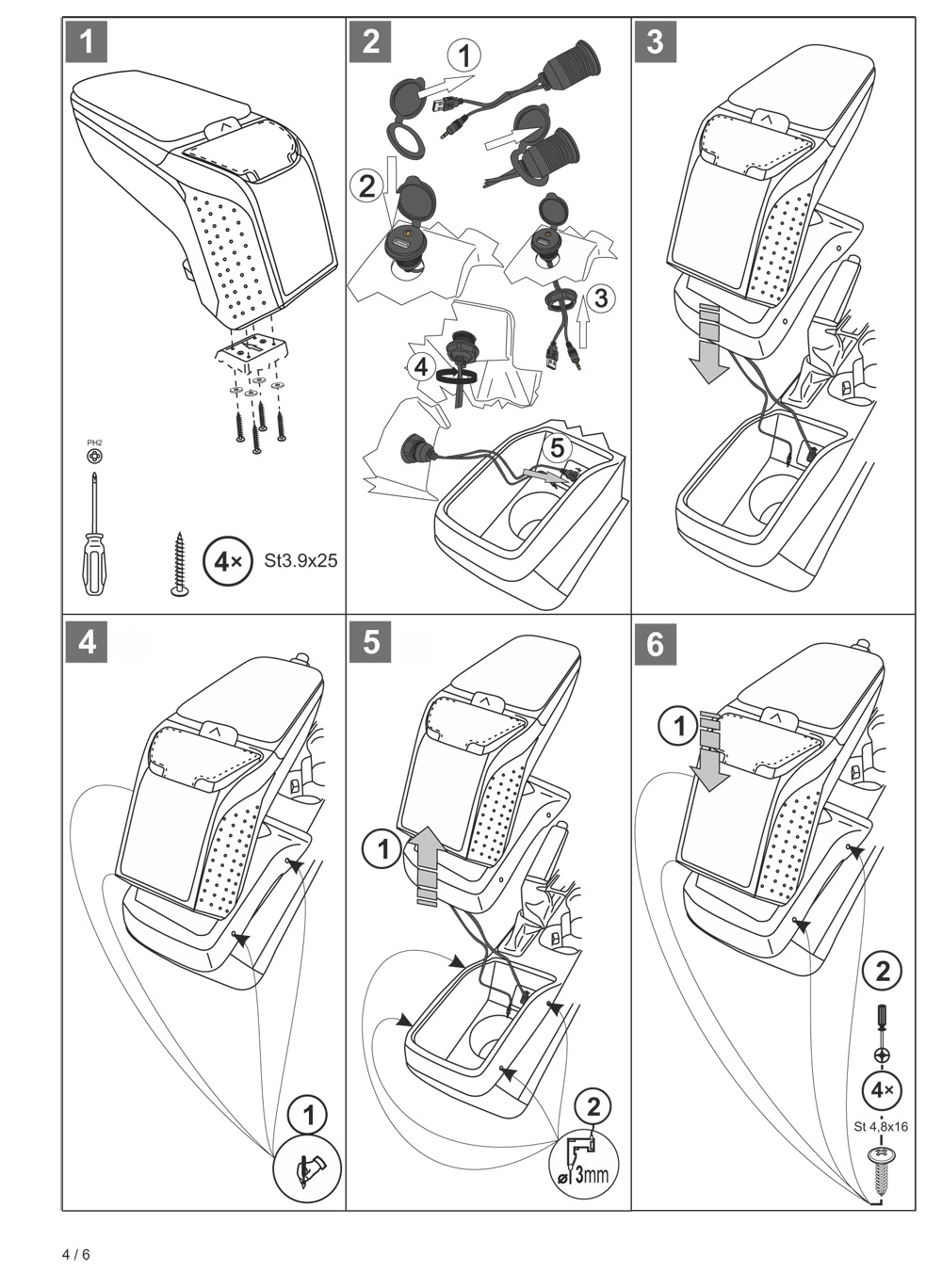 Montaż podłokietnika jest niezwykle prosty – nie trzeba odwiedzać serwisu. Instrukcja znajduje się w zestawie. Uchwyty montażowe są produkowane indywidualnie do konkretnych modeli pojazdów, dzięki czemu idealnie pasują. Nie otrzymasz żadnego uniwersalnego adaptera, który mógłby sprawić problemy przy instalacji.