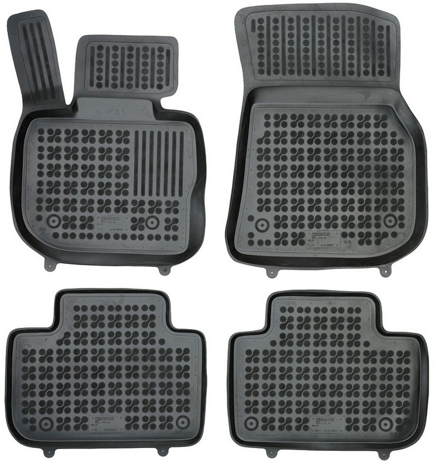 Przednie dywaniki są nawet wyposażone w miejsca na fabryczne stopery, które są zawarte w pakiecie. Dzięki stoperom można dywanik przymocować do podłogi samochodu i zapobiec suwaniu się dywanu. Dywaniki gumowe od producenta Rezaw-Plast mają nowoczesny design i produkowane są w Polsce. Wysokiej jakości materiał TPE nie wydziela nieprzyjemnego zapachu.