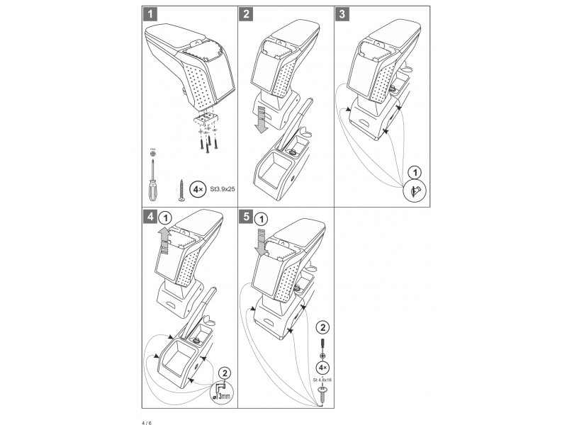 Montaż podłokietnika jest niezwykle prosty – nie trzeba odwiedzać serwisu. Instrukcja znajduje się w zestawie. Uchwyty montażowe są produkowane indywidualnie do konkretnych modeli pojazdów, dzięki czemu idealnie pasują. Nie otrzymasz żadnego uniwersalnego adaptera, który mógłby sprawić problemy przy instalacji.