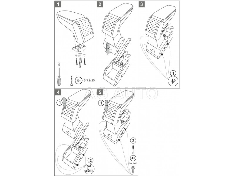 Montaż podłokietnika jest bardzo prosta i nie ma potrzeby odwiedzić serwis samochodowy. Instrukcja obsługi i wkręty do montażu znajdują się w zestawie. Część dolna podłokietnika – adapter, który przykręca się do tunelu środkowego, wykonany jest pod kształt konkretnego modelu auta, dlatego zawsze doskonale pasuje. Nie jest to uniwersalny adapter!