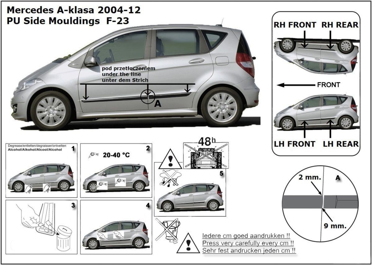 Listwy boczne na drzwi ochronne, Mercedes A-Klasse, W169, 2004-2012