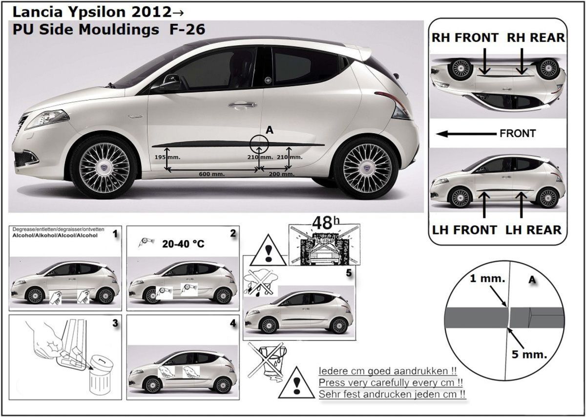 Listwy boczne na drzwi ochronne, Lancia Ypsilon, 2011-2019