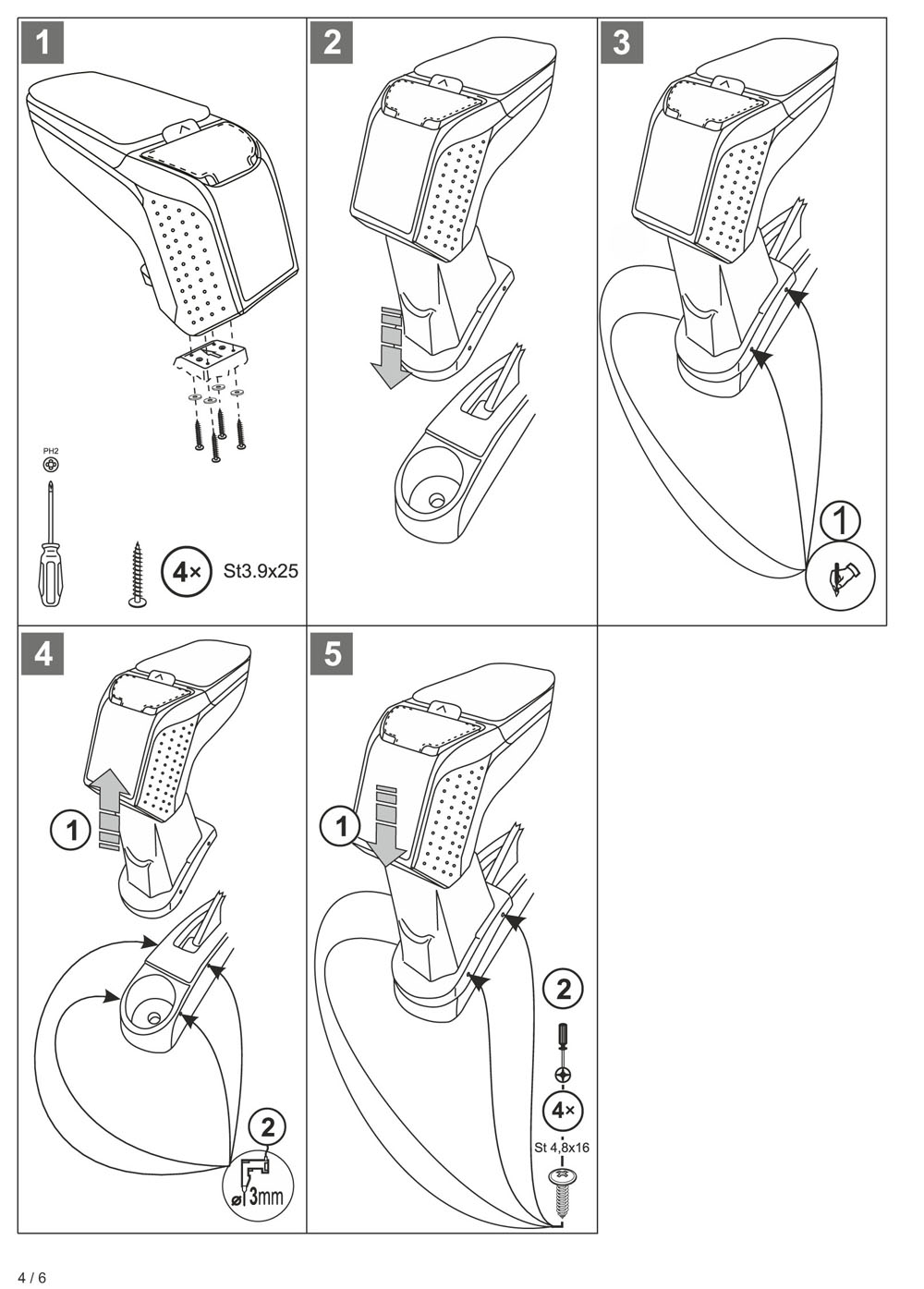 Montaż podłokietnika jest niezwykle prosty – nie trzeba odwiedzać serwisu. Instrukcja znajduje się w zestawie. Uchwyty montażowe są produkowane indywidualnie do konkretnych modeli pojazdów, dzięki czemu idealnie pasują. Nie otrzymasz żadnego uniwersalnego adaptera, który mógłby sprawić problemy przy instalacji.