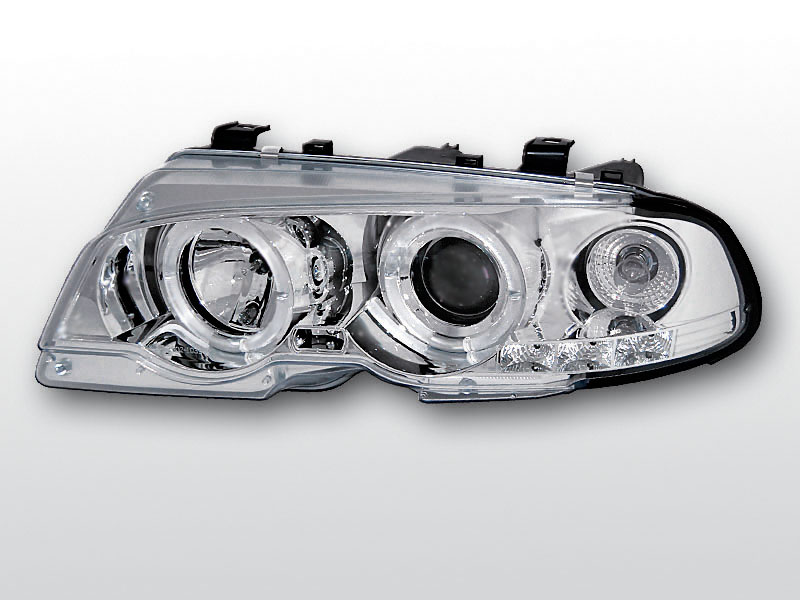 Lampy soczewkowe z ringami angel eyes. Chromowane ze zintegrowanymi kierunkowskazami.