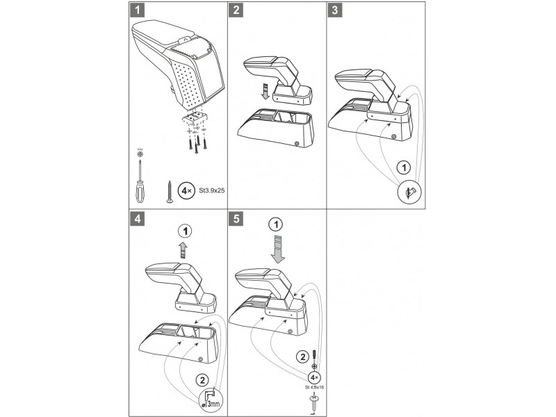 Montaż podłokietnika jest bardzo prosta i nie ma potrzeby odwiedzić serwis samochodowy. Instrukcja obsługi i wkręty do montażu znajdują się w zestawie. Część dolna podłokietnika – adapter, który przykręca się do tunelu środkowego, wykonany jest pod kształt konkretnego modelu auta, dlatego zawsze doskonale pasuje. Nie jest to uniwersalny adapter!