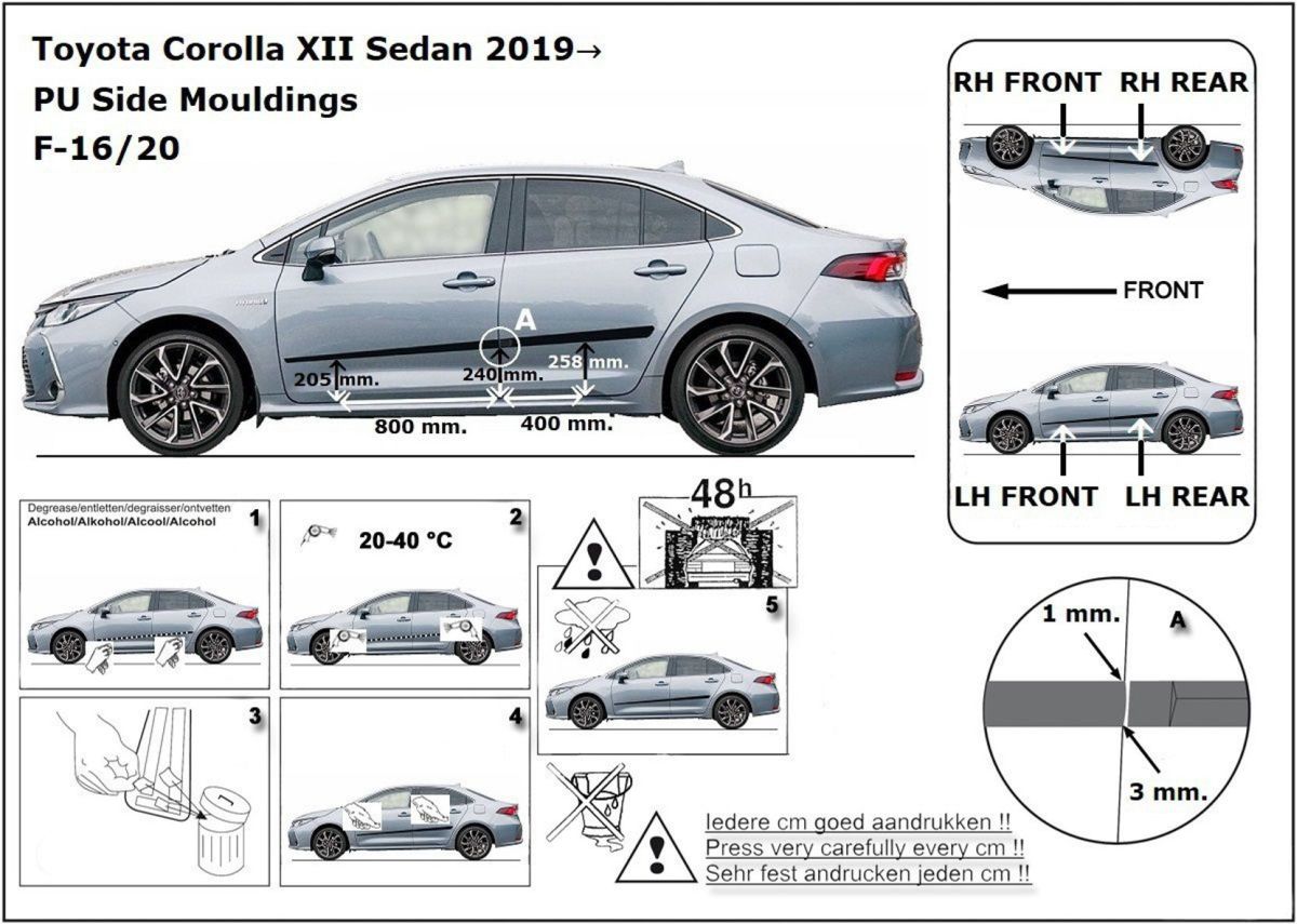 Listwy boczne na drzwi ochronne, Toyota Corolla XII, E21, 2018-2023, Sedan, Combi