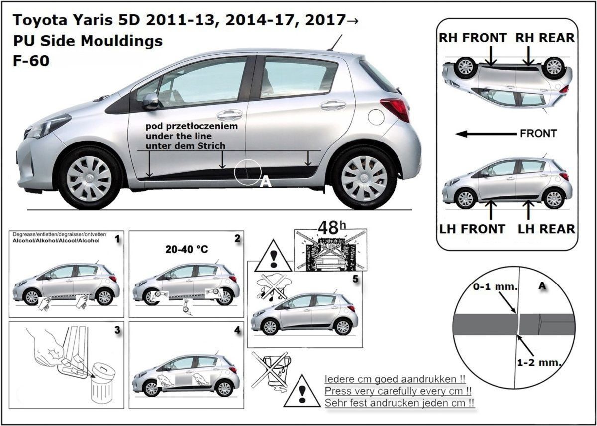 Listwy boczne na drzwi ochronne, Toyota Yaris III, 2011-2016, 5 drzwi