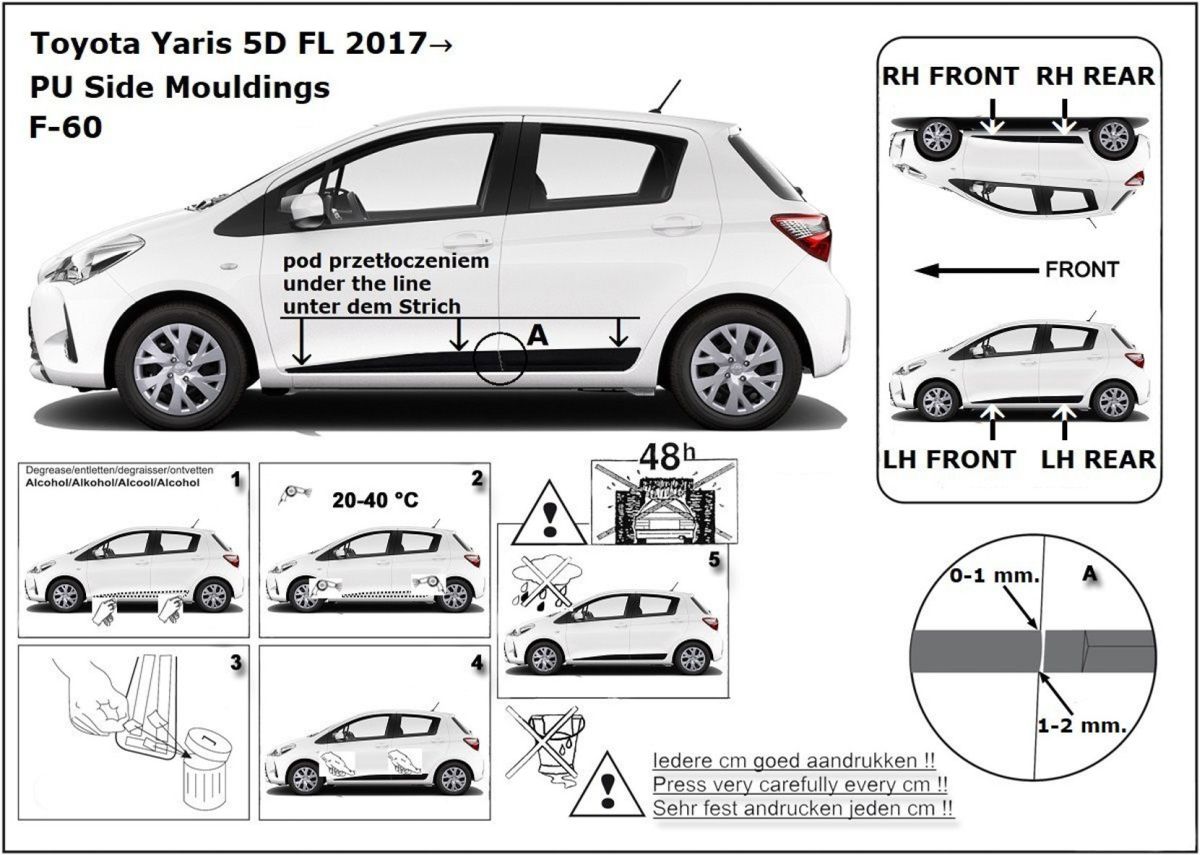 Listwy boczne na drzwi ochronne, Toyota Yaris III, 2017-2020, 5 drzwi