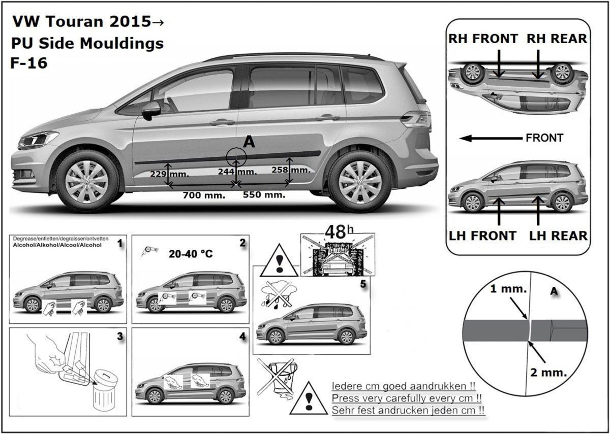 Listwy boczne na drzwi ochronne, VW Touran II, 2016-