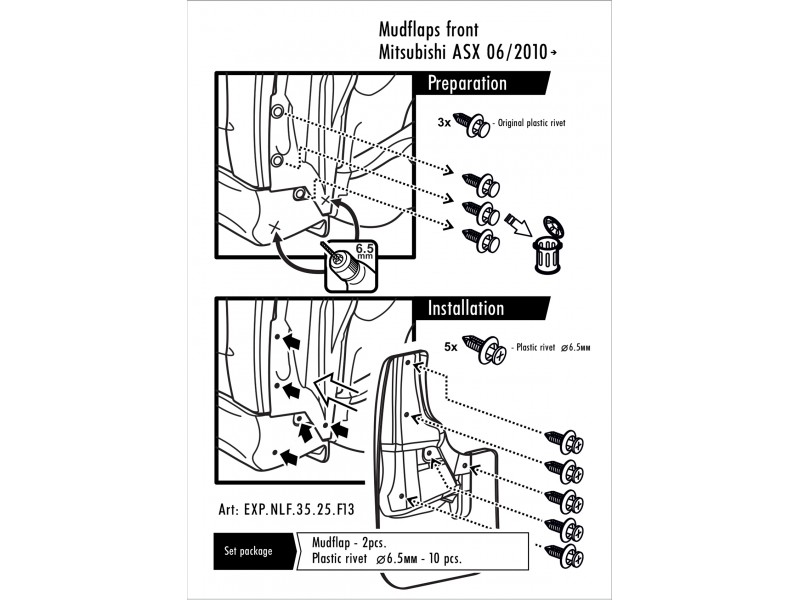 Chlapacze, fartuchy, Mitsubishi ASX, 2010-2016, przednie