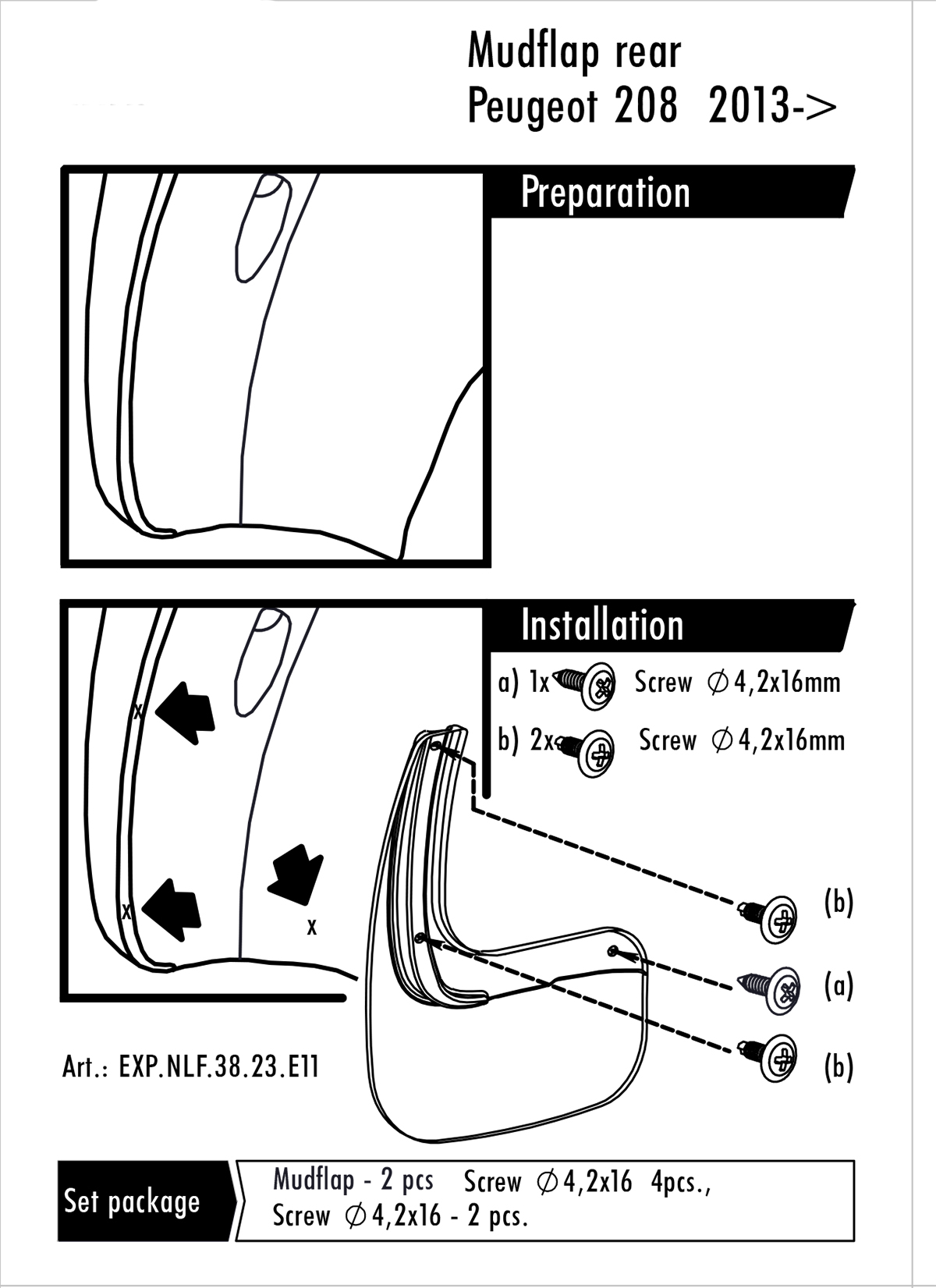 Chlapacze, fartuchy, Peugeot 208, 2012-2019, HTB, tyłne
