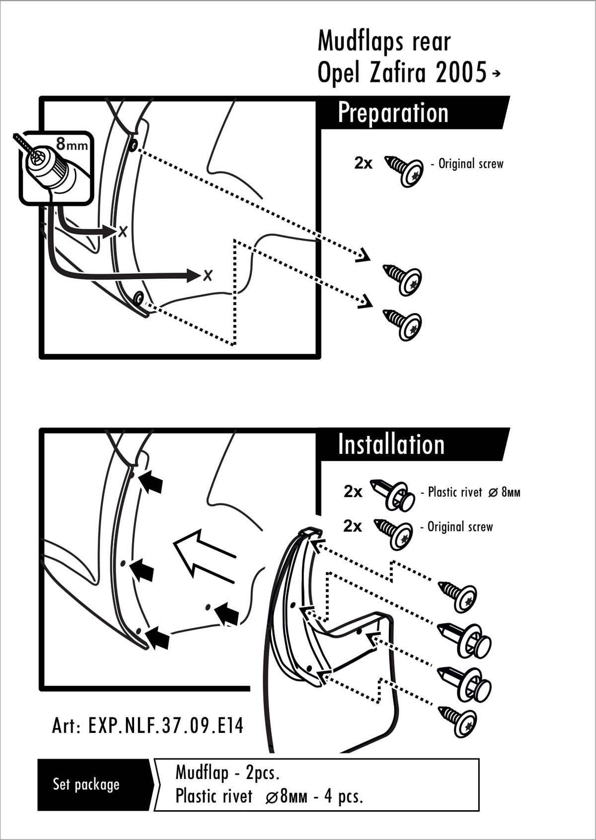 Chlapacze, fartuchy, Opel Zafira B, 2005-2014, przednie