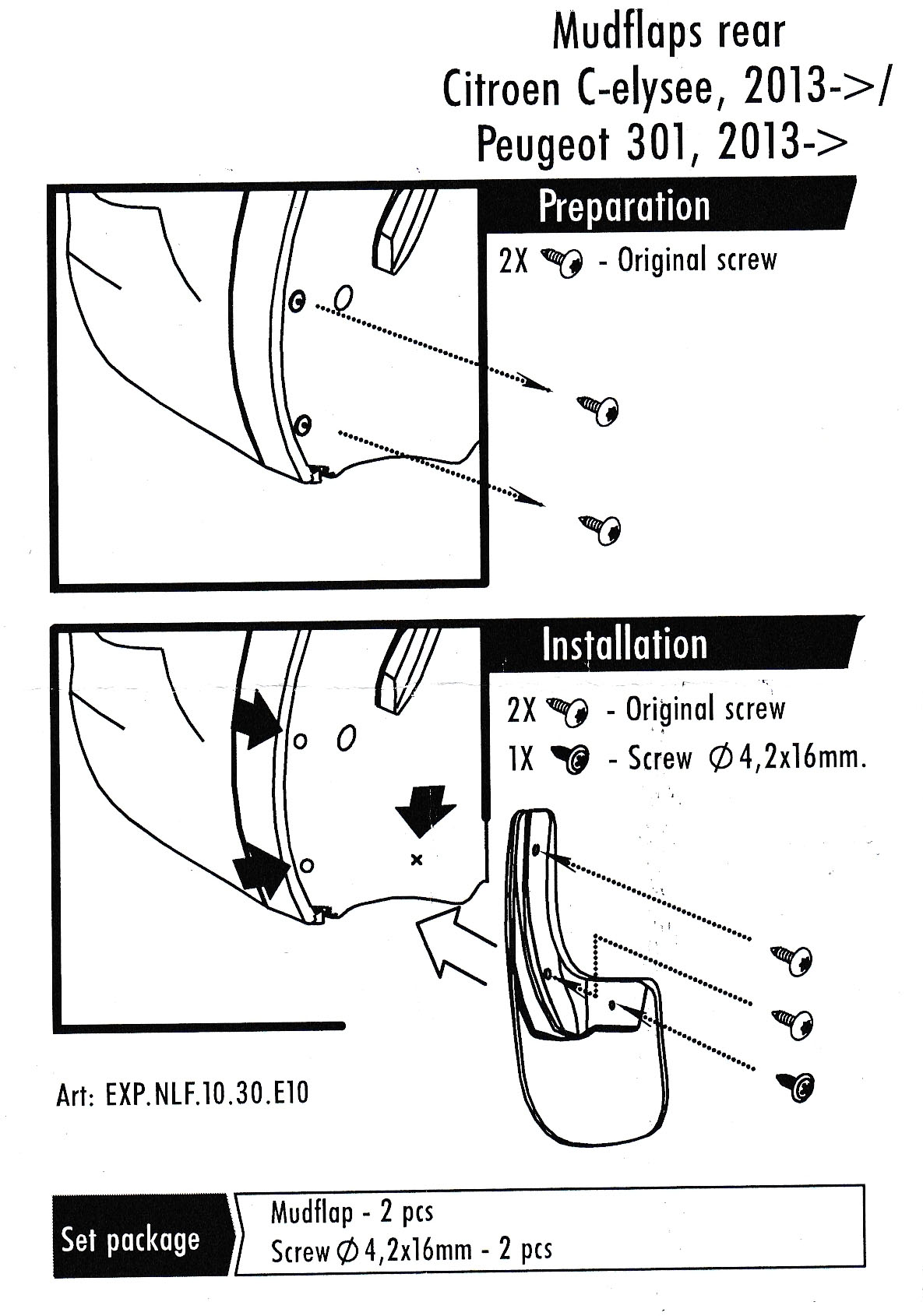Chlapacze, fartuchy, Peugeot 301, 2013- , przednie