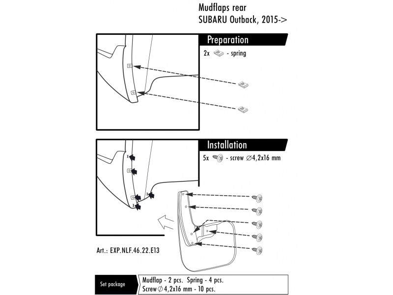 Chlapacze, fartuchy, Subaru Outback V, 2015-2019, tyłne