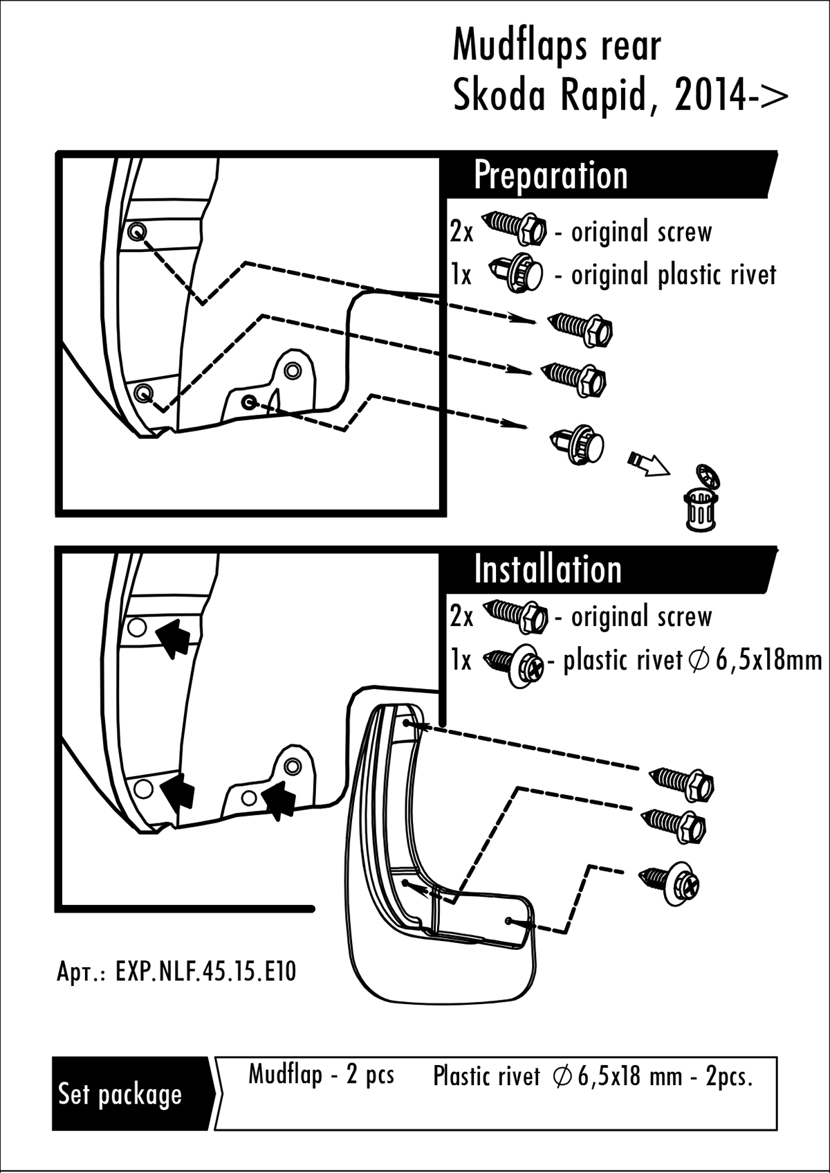 Chlapacze, fartuchy, Škoda Rapid, 2011-2020, Sedan, przednie