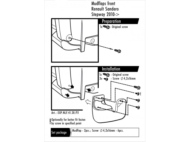 Chlapacze, fartuchy, Dacia Sandero II Stepway, 2010-2014, przednie