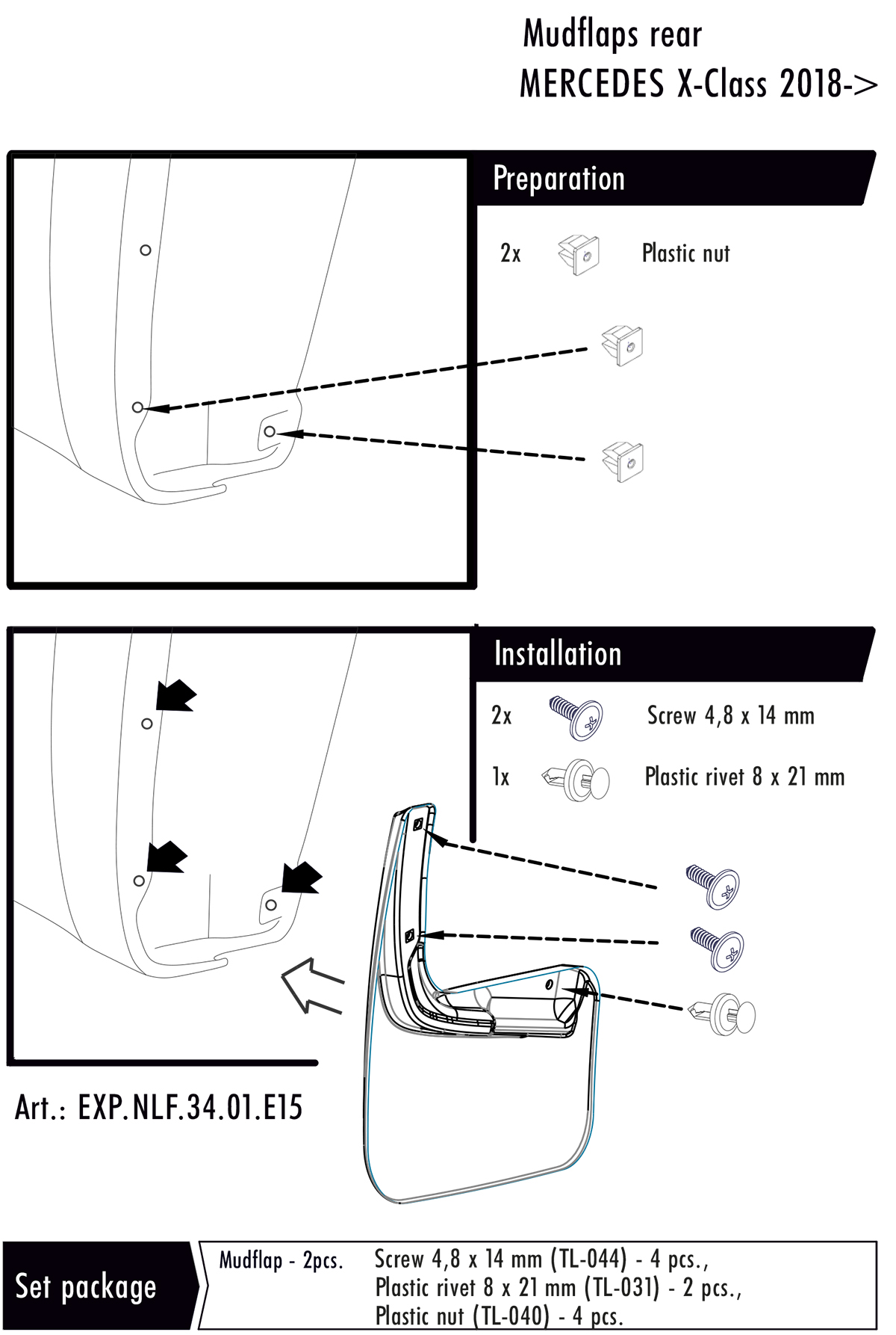 Chlapacze, fartuchy, Mercedes X-Klasse , 2017-2020, tyłne