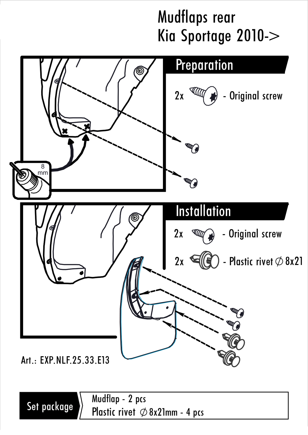Chlapacze, fartuchy, Kia Sportage III, 2010-2015, tyłne