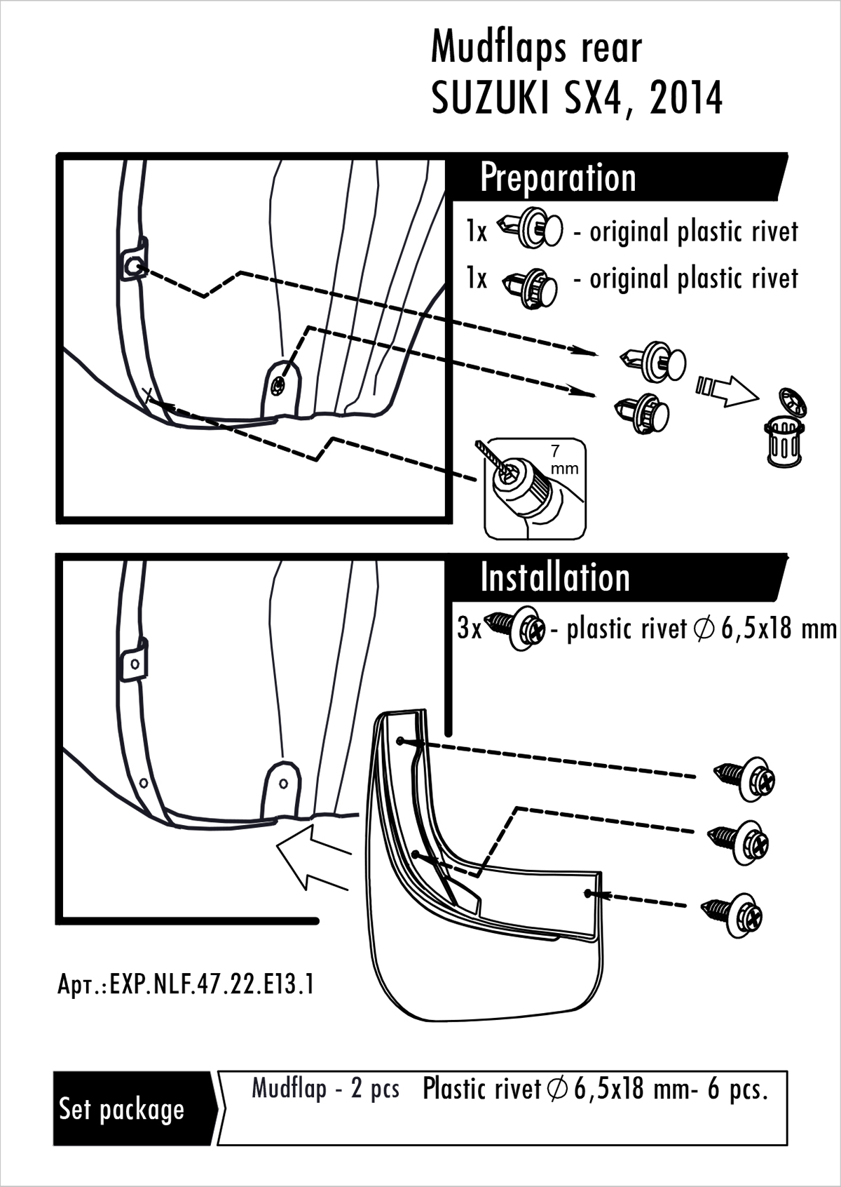 Chlapacze, fartuchy, Suzuki SX4 II, 2013- , tyłne