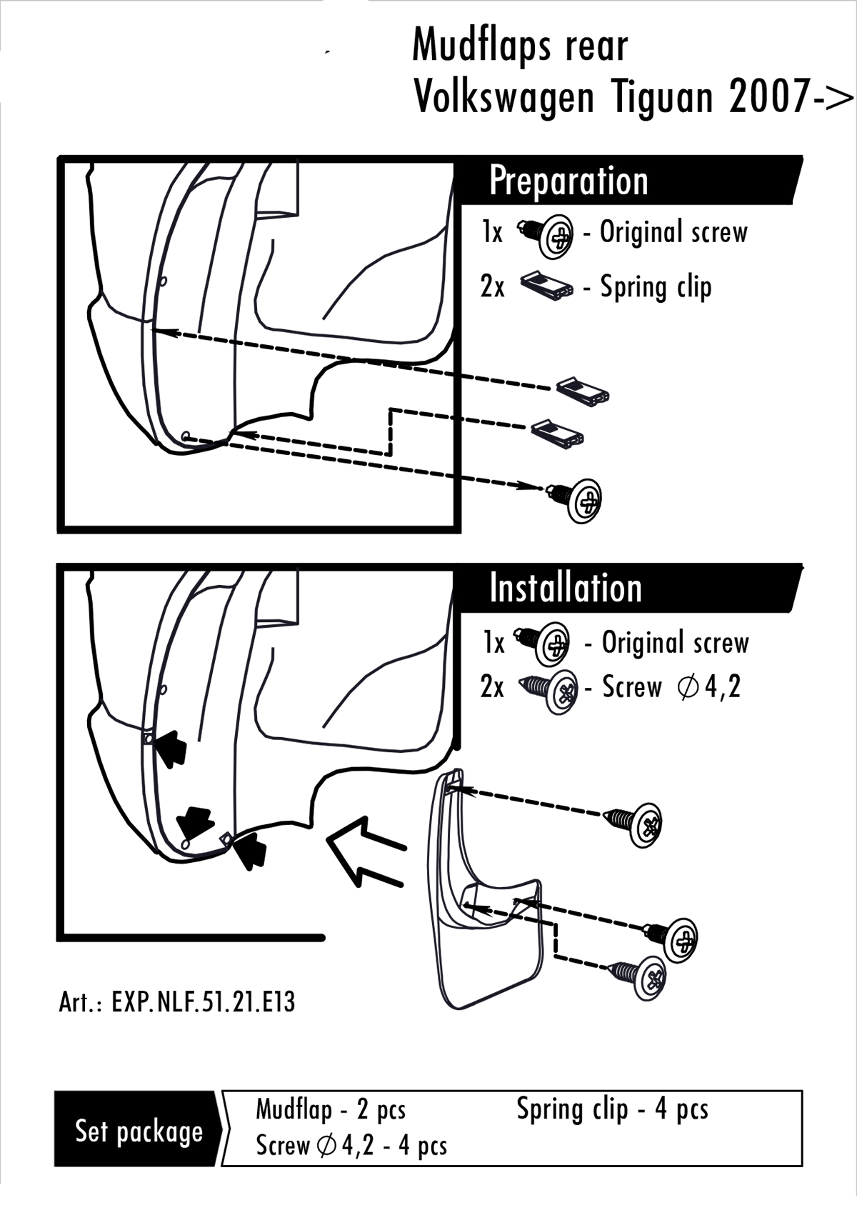 Chlapacze, fartuchy, Volkswagen Tiguan I, 2007-2016, tyłne