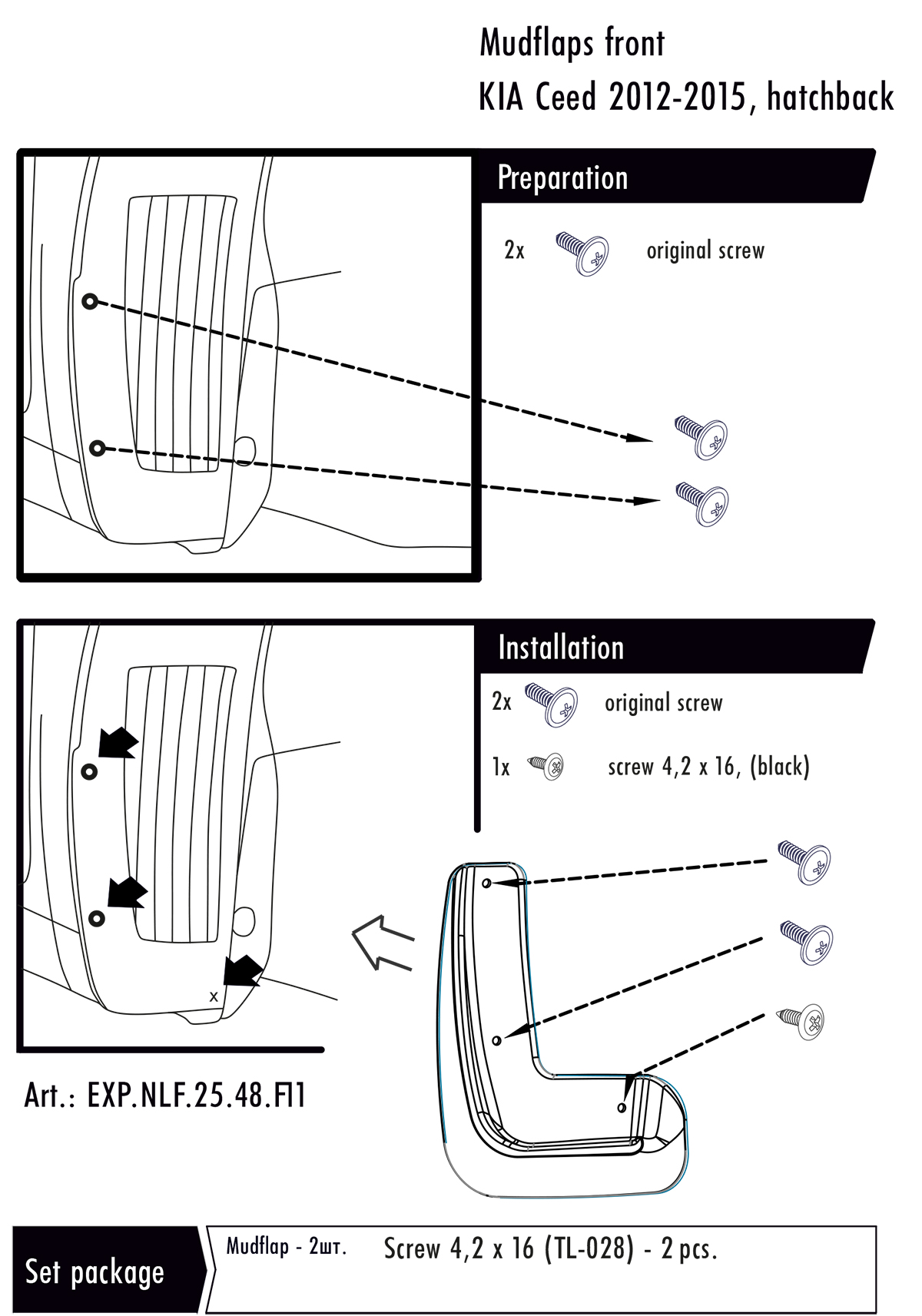 Chlapacze, fartuchy, Kia Ceed II, 2012-2015, HTB, przednie