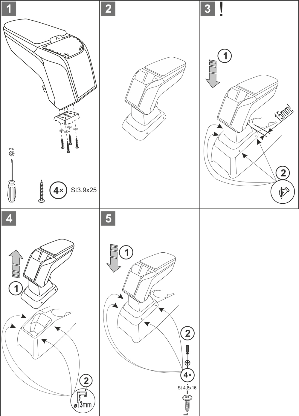 Montaż podłokietnika jest niezwykle prosty – nie trzeba odwiedzać serwisu. Instrukcja znajduje się w zestawie. Uchwyty montażowe są produkowane indywidualnie do konkretnych modeli pojazdów, dzięki czemu idealnie pasują. Nie otrzymasz żadnego uniwersalnego adaptera, który mógłby sprawić problemy przy instalacji.