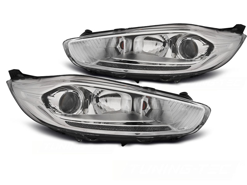 Lampy przednie, FORD FIESTA MK7, 2013-2016, LED DRL CHROME