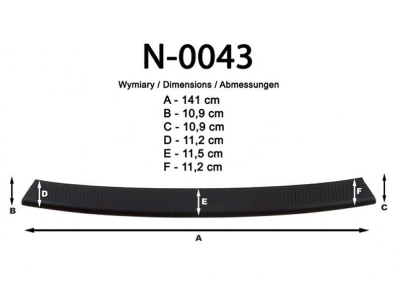 Listwa ochronna bagażnika jest produkowana z czarnego plastiku ABS charakteryzującego się wielką odpornością przeciw uszkodzeniom oraz otarciom. Prosty montaż listwy za pomocą taśmy obustronnej, która jest zawartością zestawu.