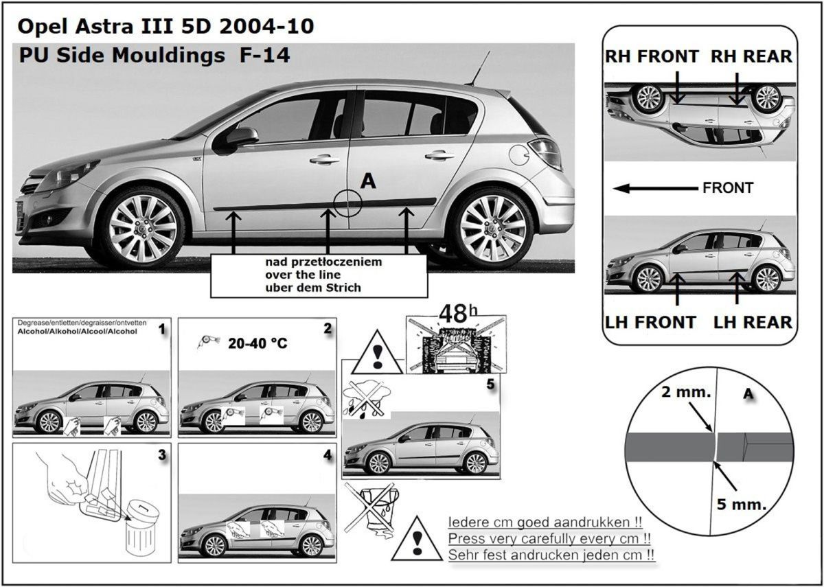 Listwy boczne na drzwi ochronne, Opel Astra H, 2004-2014