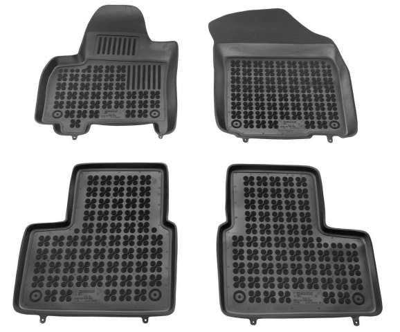 Przednie dywaniki są nawet wyposażone w miejsca na fabryczne stopery, które są zawarte w pakiecie. Dzięki stoperom można dywanik przymocować do podłogi samochodu i zapobiec suwaniu się dywanu. Dywaniki gumowe od producenta Rezaw-Plast mają nowoczesny design i produkowane są w Polsce. Wysokiej jakości materiał TPE nie wydziela nieprzyjemnego zapachu.