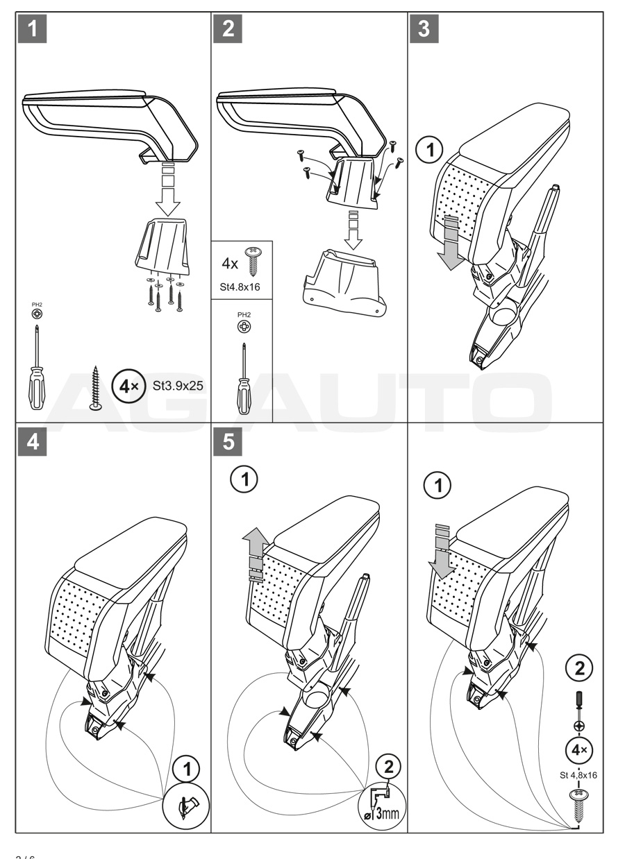 Montaż podłokietnika jest bardzo prosta i nie ma potrzeby odwiedzić serwis samochodowy. Instrukcja obsługi i wkręty do montażu znajdują się w zestawie. Część dolna podłokietnika – adapter, który przykręca się do tunelu środkowego, wykonany jest pod kształt konkretnego modelu auta, dlatego zawsze doskonale pasuje. Nie jest to uniwersalny adapter!