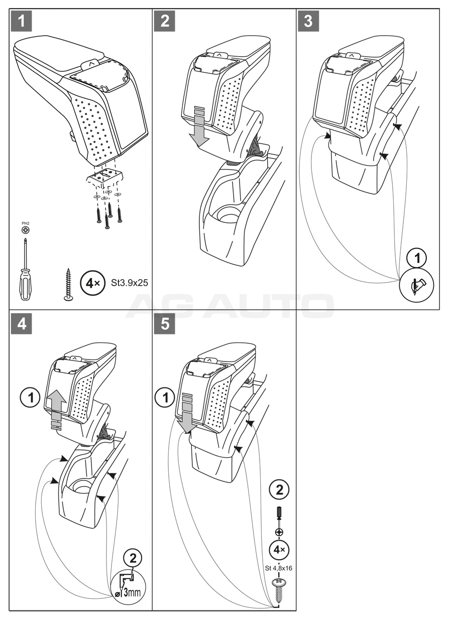 Montaż podłokietnika jest niezwykle prosty – nie trzeba odwiedzać serwisu. Instrukcja znajduje się w zestawie. Uchwyty montażowe są produkowane indywidualnie do konkretnych modeli pojazdów, dzięki czemu idealnie pasują. Nie otrzymasz żadnego uniwersalnego adaptera, który mógłby sprawić problemy przy instalacji.