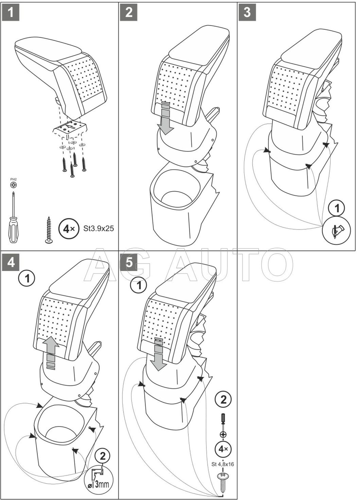 Montaż podłokietnika jest bardzo prosta i nie ma potrzeby odwiedzić serwis samochodowy. Instrukcja obsługi i wkręty do montażu znajdują się w zestawie. Część dolna podłokietnika – adapter, który przykręca się do tunelu środkowego, wykonany jest pod kształt konkretnego modelu auta, dlatego zawsze doskonale pasuje. Nie jest to uniwersalny adapter!