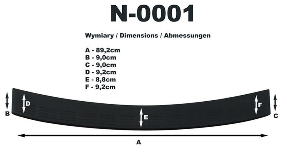 Listwa ochronna bagażnika jest produkowana z czarnego plastiku ABS charakteryzującego się wielką odpornością przeciw uszkodzeniom oraz otarciom. Prosty montaż listwy za pomocą taśmy obustronnej, która jest zawartością zestawu.