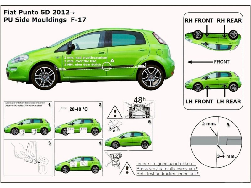 Listwy boczne na drzwi ochronne, Fiat Grande Punto, 2005-2018, 3 dwrz.