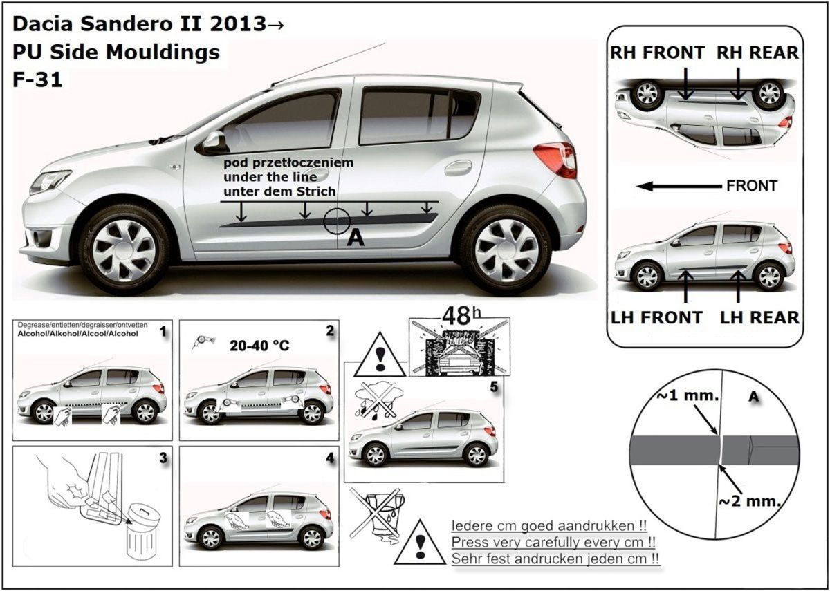 Listwy boczne na drzwi ochronne, Dacia Sandero II, 2013-2020