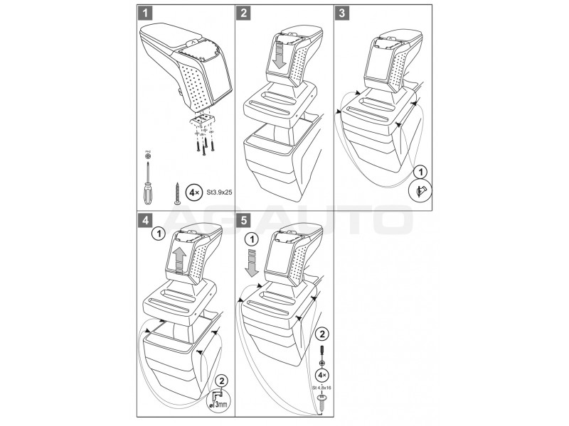 Montaż podłokietnika jest bardzo prosta i nie ma potrzeby odwiedzić serwis samochodowy. Instrukcja obsługi i wkręty do montażu znajdują się w zestawie. Część dolna podłokietnika – adapter, który przykręca się do tunelu środkowego, wykonany jest pod kształt konkretnego modelu auta, dlatego zawsze doskonale pasuje. Nie jest to uniwersalny adapter!