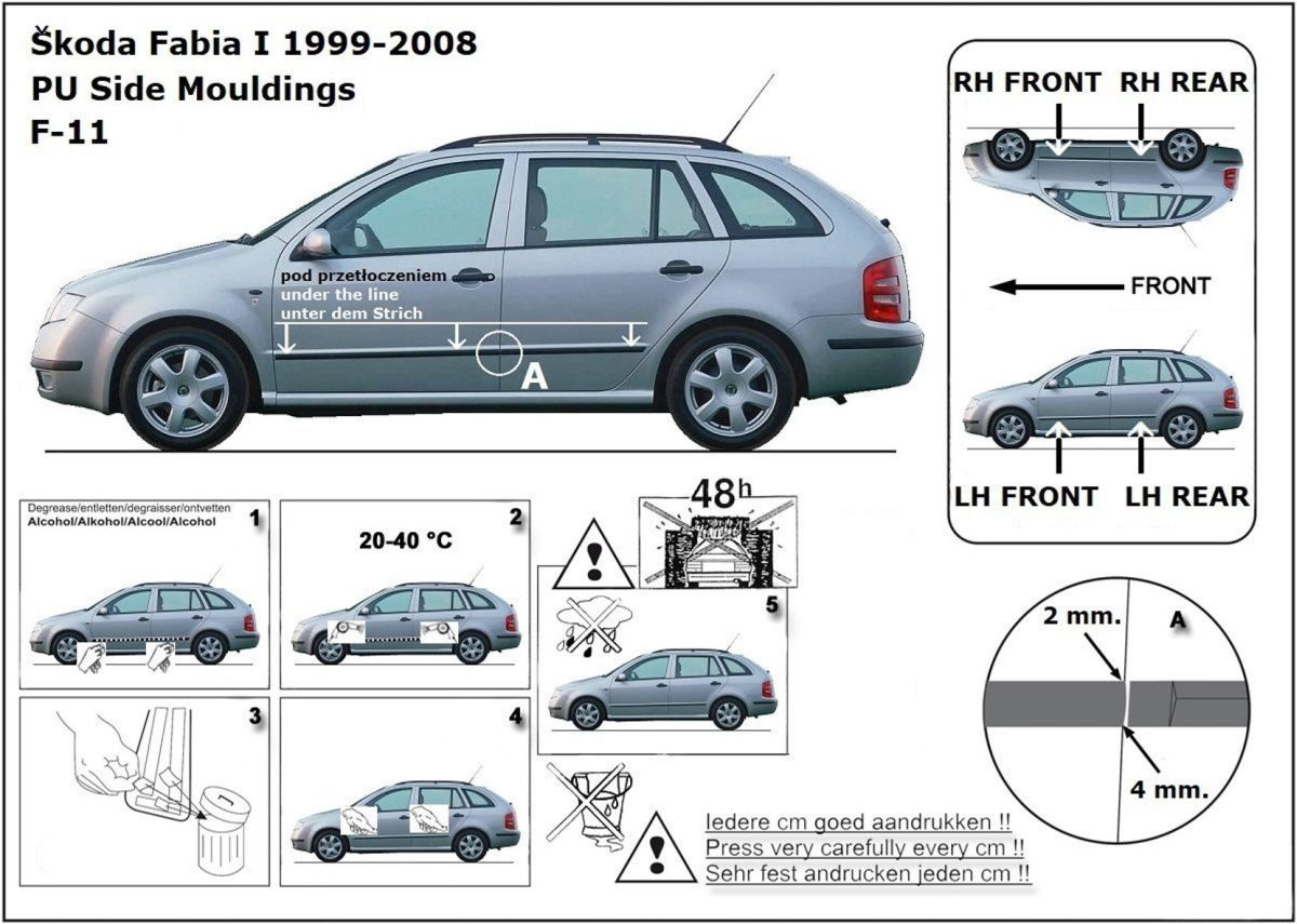 Listwy boczne na drzwi ochronne, Skoda Fabia I, 1999-2007