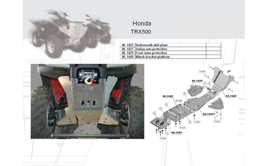 Osłona spodu pod quada ATV, Honda Foreman (Rubicon) TRX500, 2007->, Aluminium 4 mm
