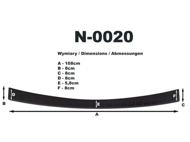 Listwa ochronna bagażnika jest produkowana z czarnego plastiku ABS charakteryzującego się wielką odpornością przeciw uszkodzeniom oraz otarciom. Prosty montaż listwy za pomocą taśmy obustronnej, która jest zawartością zestawu.